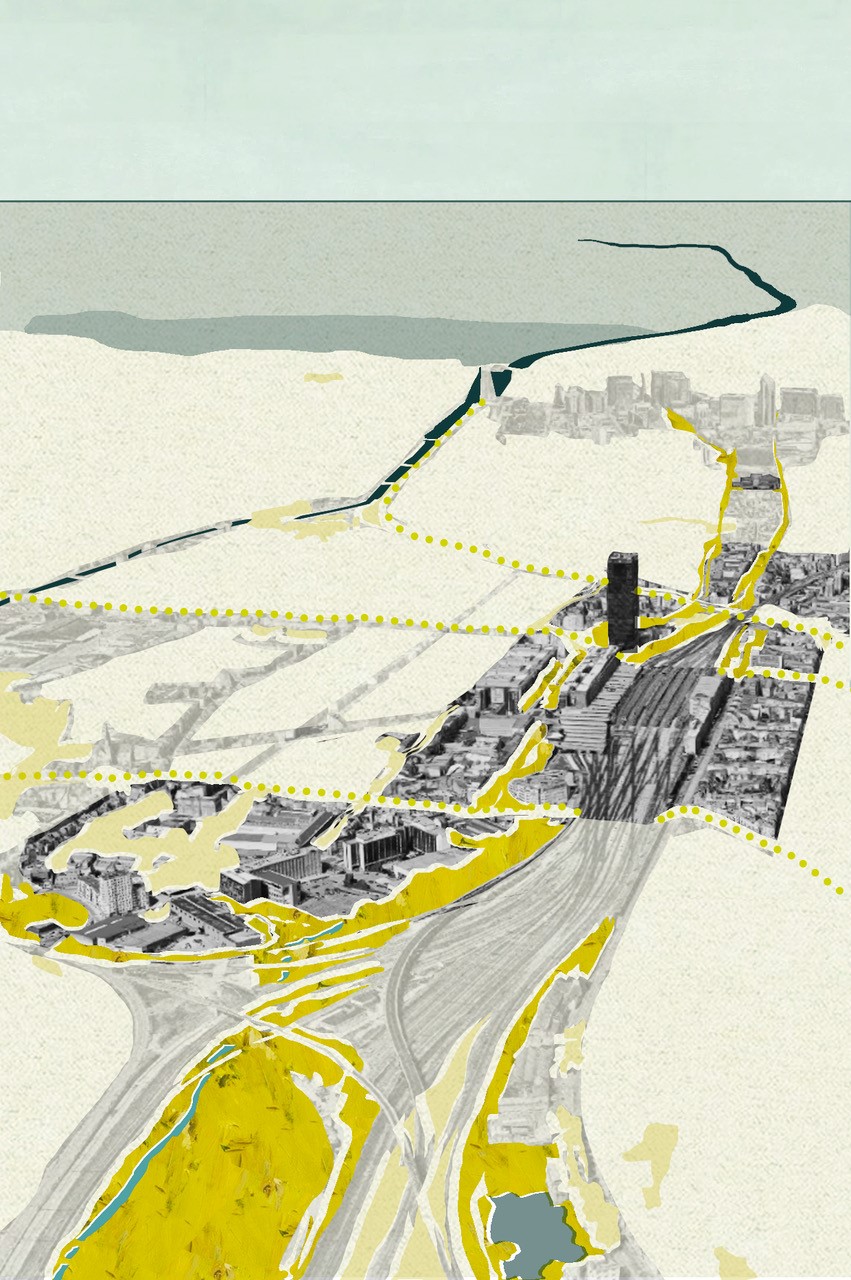 De gebouwen reactiveren met nieuwe gewestelijke voorzieningen. - SVC 3 – Weststation (Molenbeek/Anderlecht) – Studiebureaus Taktyk, Alive en 1010.