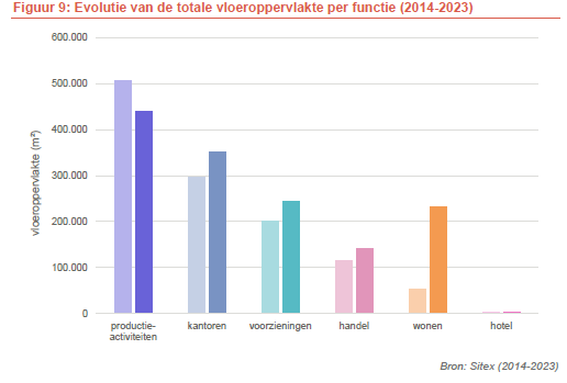 On observe toutefois un glissement clair. Les activités de production matérielle diminuent. Bien que les bureaux en tant que tels n’y soient pas autorisés, les « fonctions de type bureau » augmentent (telles que les activités B2B et la production de biens immatériels comme l’informatique et la communication). La meilleure rentabilité de ces fonctions, mais aussi la crainte de nuisances pour les riverains jouent ici un rôle important. Par ailleurs, des espaces commerciaux supplémentaires ont également vu le jour durant les dix dernières années.
