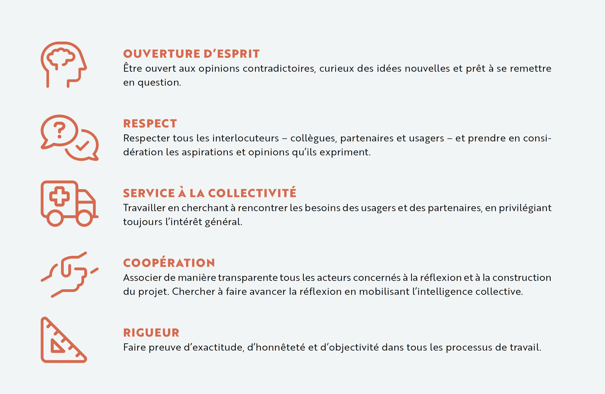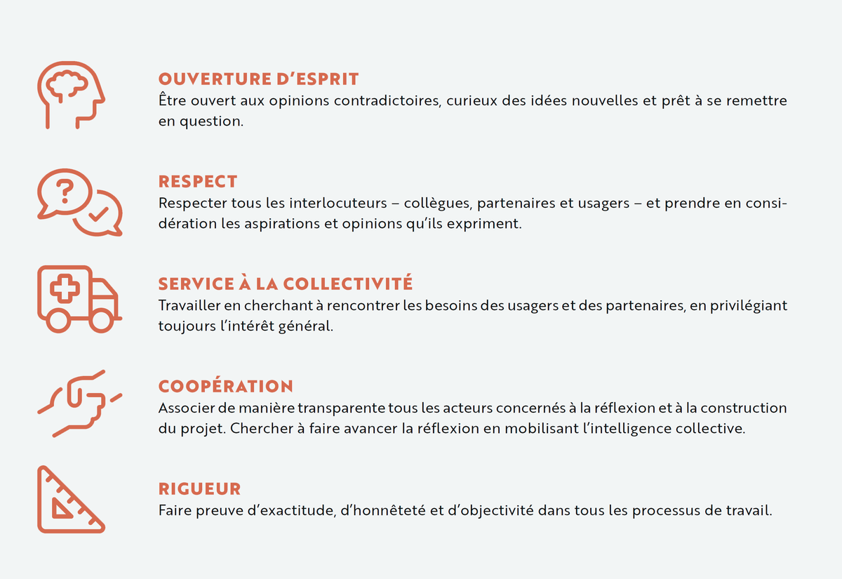 Les valeurs de Perspective ont été définies lors de la création de l’institution lors d’un processus participatif. Les missions et la vision de Perspective se déploient au travers de valeurs de l’institution. Celles-ci constituent des références qui guident les actions de l’institution et de l’ensemble de ses collaborateurs et collaboratrices.