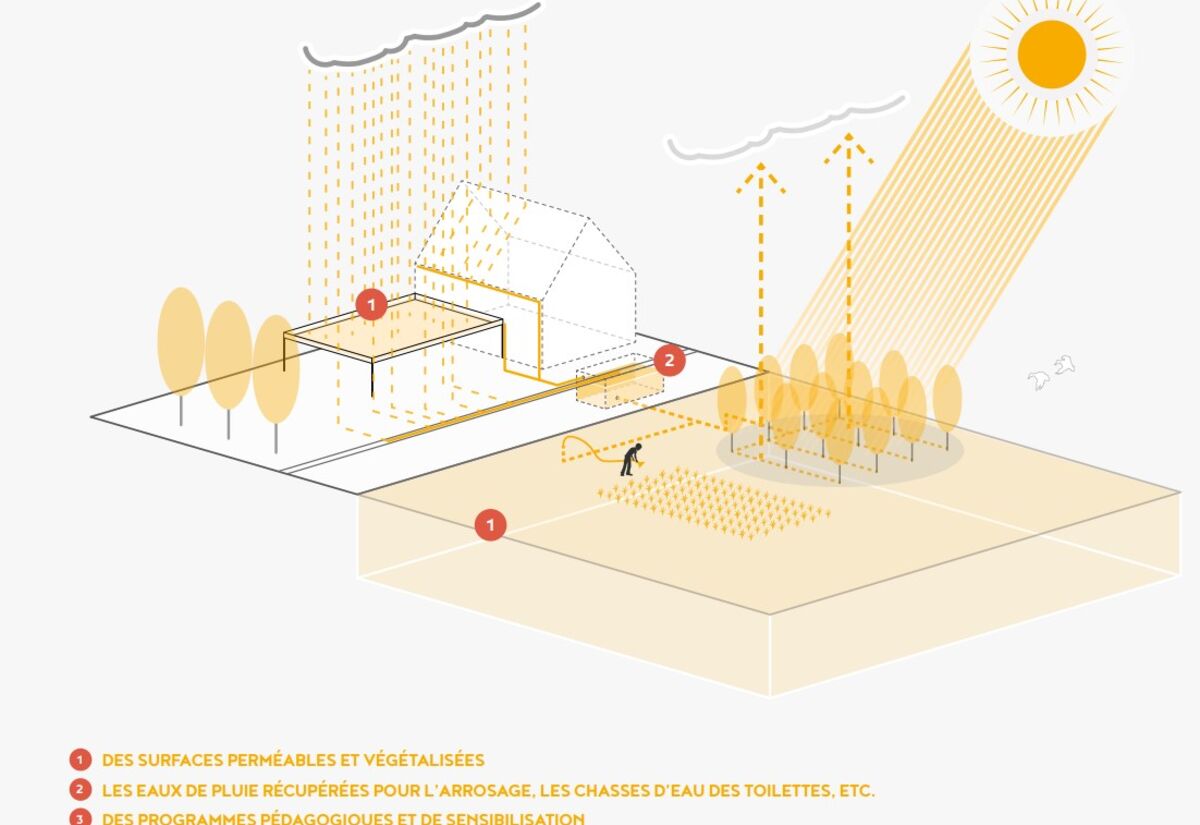 - Récupération des eaux de pluie pour alimenter les chasses ;