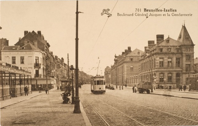 Zicht op de politiekazerne vanaf het station van Etterbeek (begin van de 20ste eeuw)