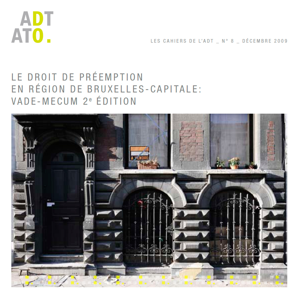 Ce dispositif existe en Région de Bruxelles-Capitale depuis l'entrée en vigueur de l'ordonnance du 18 juillet 2002 relative au droit de préemption (insérée depuis 2004 dans le CoBAT). En 2006, l'ADT en collaboration avec des juristes (DLM scrl) a édité un vade-mecum sur le droit de préemption (Cahier n°2).